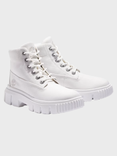 O Cloud Dancer estende-se também ao calçado, adaptando-se a diferentes ocasiões do dia a dia. Os sapatos em verniz da Aldo, com salto em funil, são ideais para ambientes mais formais ou ocasiões especiais. Para um registo mais casual e prático, as botas brancas da Timberland oferecem comodidade e resistência.
